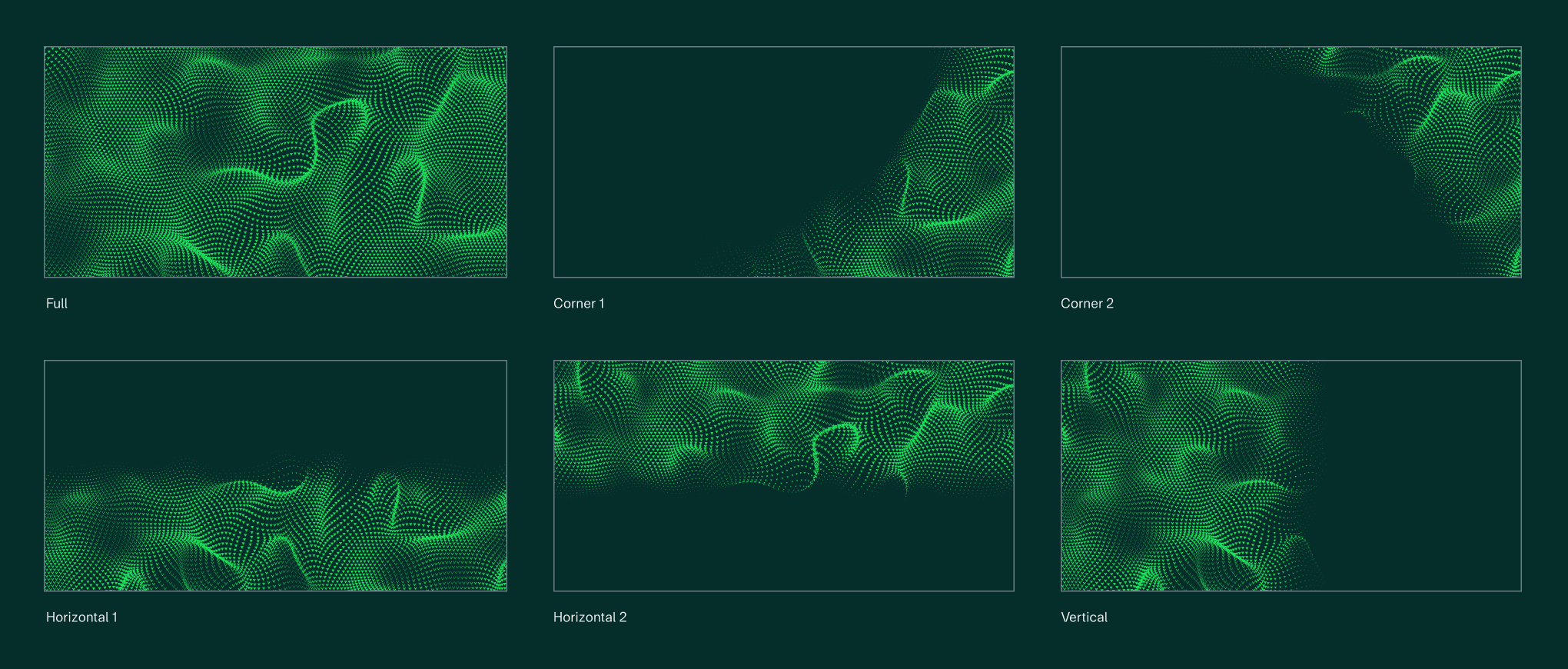 Our responsive V.Sea state is our most dynamic version, reacting to the movement of the user’s mouse to change the flow. We use the responsive graphic sparingly for impact, for example on the website landing page.