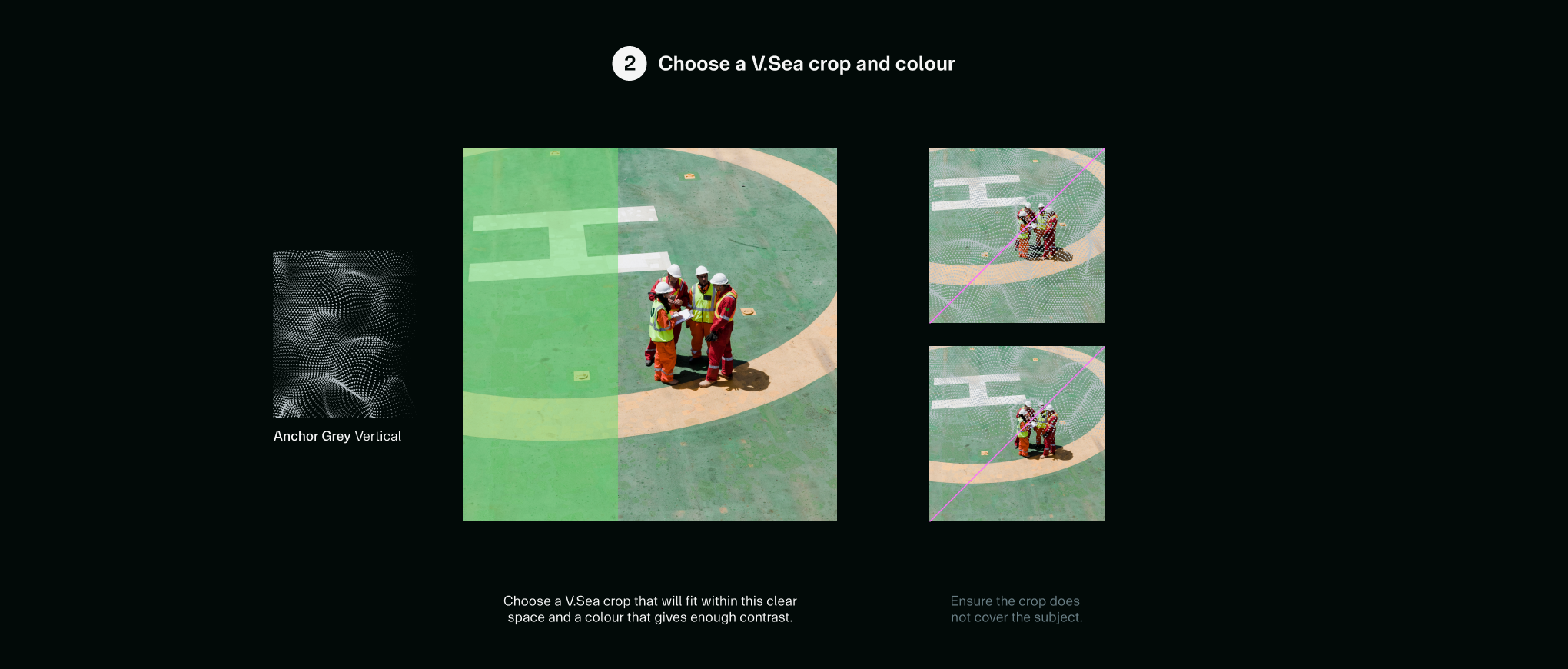 The V.Sea can be overlayed with imagery for a distinctive and ownable look. To maintain consistency, we follow the principles outlined below.
